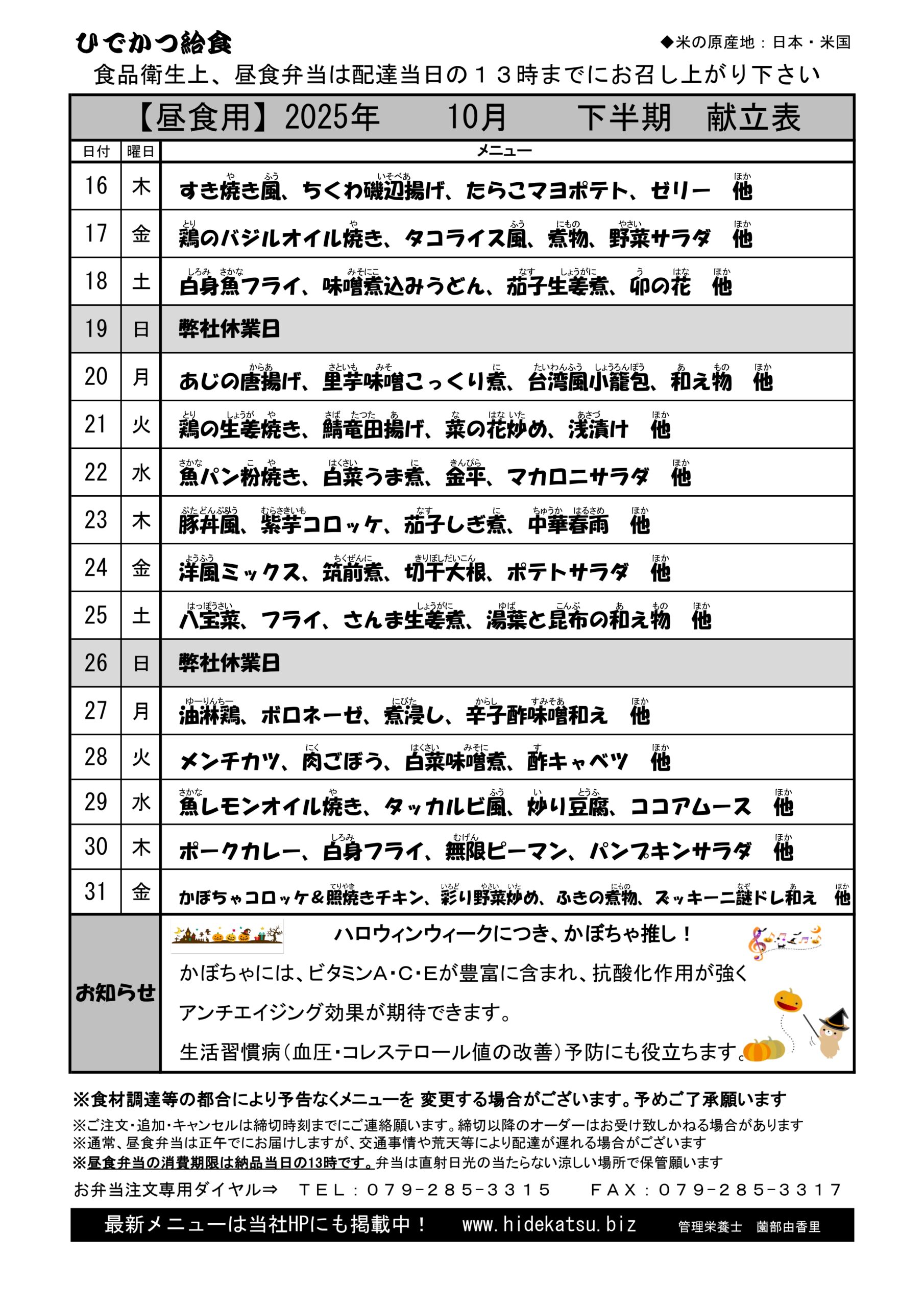 2025年10月後半メニュー